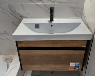 Установка раковины с тумбой